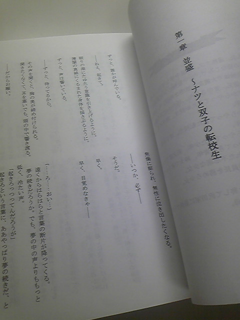 表紙も背表紙も適当なので、今度はもっと凝った装丁にしたいなあ。紙質を変えたり、ラミネートで補強したり。