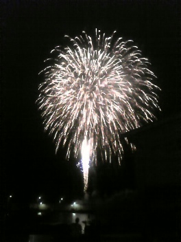 地元のイベントで、夜に花火が上がっていました。